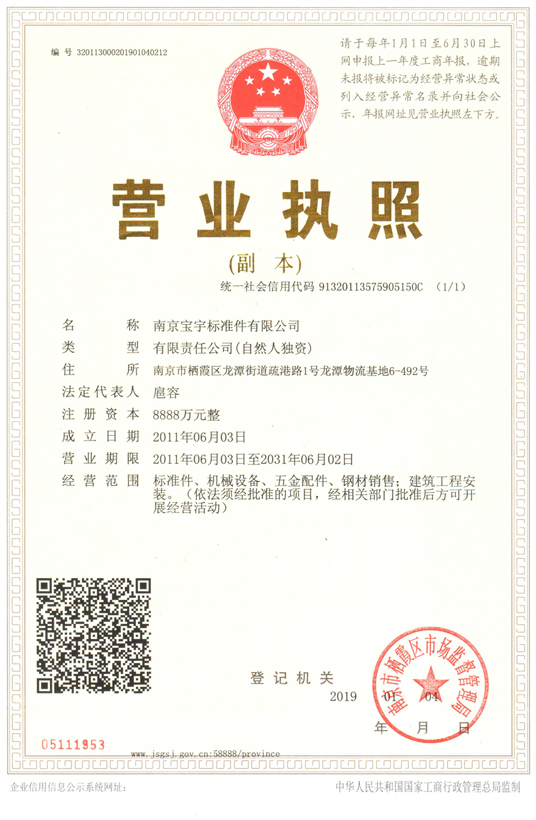 南京寶宇標(biāo)準(zhǔn)件有限公司,專業(yè)標(biāo)準(zhǔn)件,真正廠家直銷,成立于1992年,目前占地面積5萬平方米,建筑面積2.6萬平方米,現(xiàn)有熱打車間.冷墩車間、搓絲車間,包裝車間、數(shù)控車間、精加工車間、獨(dú)立實(shí)驗(yàn)室,主要生產(chǎn)設(shè)備200多臺(tái)。公司目前擁有約150名員工,其中高級(jí)工程師4名,工程師9名,技術(shù)人員30名。公司專業(yè)生產(chǎn)和研發(fā)碳鋼、不銹鋼、銅 標(biāo)準(zhǔn)件、緊固件和非標(biāo)準(zhǔn)件,產(chǎn)品種類有:螺栓、螺釘、螺絲、螺母、平墊、彈墊、螺柱、組合件、非標(biāo)異型件及精密零件,等多種列。 碳鋼,等級(jí)有:4.8級(jí) 6.8級(jí) 8.8級(jí) 10.9級(jí) 12.9級(jí),不銹鋼,材質(zhì)有:201. 202 .304 .316. 316L.904 .904L 等等。 特別是各種小標(biāo)不銹鋼標(biāo)準(zhǔn)件產(chǎn)品,我公司采用大型進(jìn)口機(jī)械設(shè)備加工,價(jià)格實(shí)惠,有現(xiàn)貨供應(yīng)。購買南京標(biāo)準(zhǔn)件,南京緊固件,南京螺絲,南京螺母